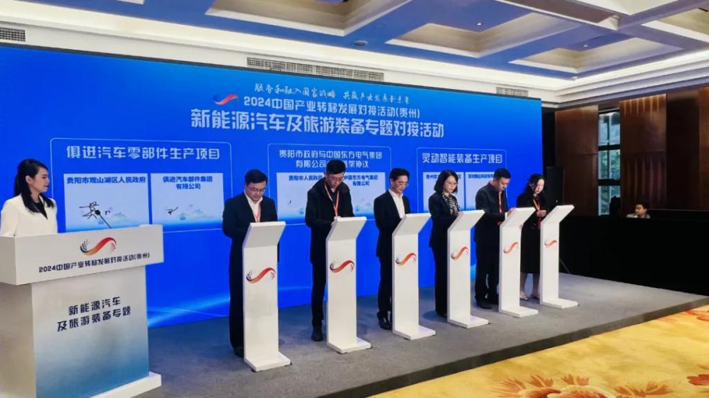 2024中国产业转移发展对接活动(贵州)以“服务和融入国家战略 共赢产业发展新未来”为主题,包括1场综合活动和4场专题活动,围绕资源精深加工及综合利用、先进装备制造、大数据电子信息、特色轻工等贵州特色优势产业,开展地市推介、政企对接、实地考察、专家解读、项目签约等。在新能源汽车及旅游装备专题对接活动中,人生就是搏集团与贵阳市人民政府签署了战略合作框架协议。